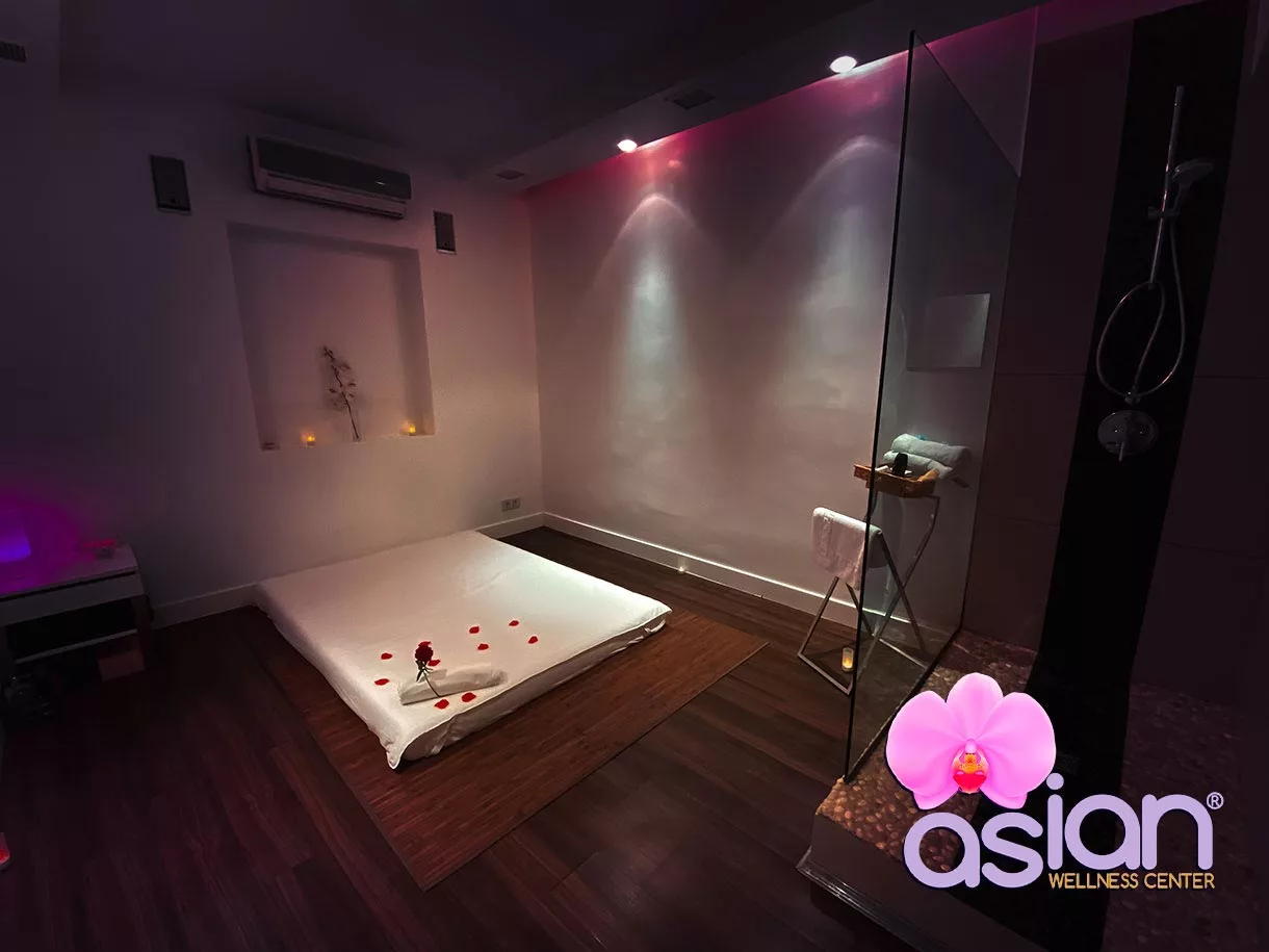 En Asian Wellness Madrid, nuestras instalaciones están diseñadas para ofrecerte una experiencia de placer, relajación y exclusividad desde el primer momento. Cada sala de masaje combina comodidad, privacidad y elegancia, creando un ambiente íntimo donde puedas desconectar del estrés y entregarte a sensaciones únicas.